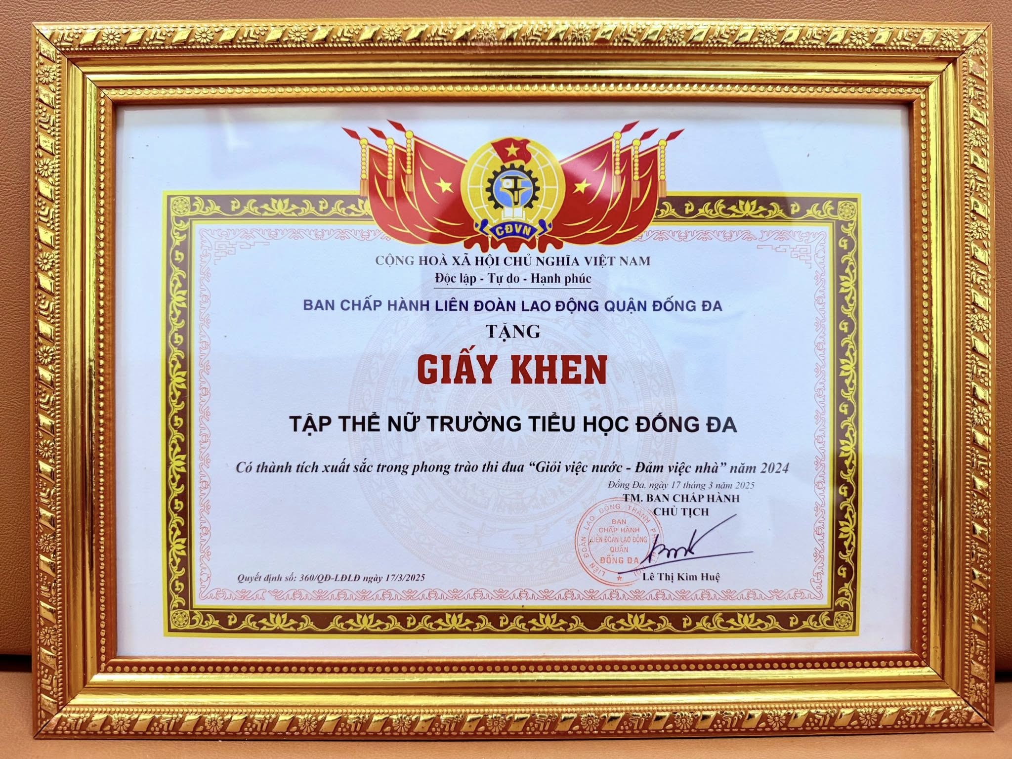 VINH DANH THÀNH TÍCH XUẤT SẮC CỦA TẬP THỂ NỮ TRƯỜNG TIỂU HỌC ĐỐNG ĐA TRONG PHONG TRÀO “GIỎI VIỆC NƯỚC – ĐẢM VIỆC NHÀ” NĂM 2024