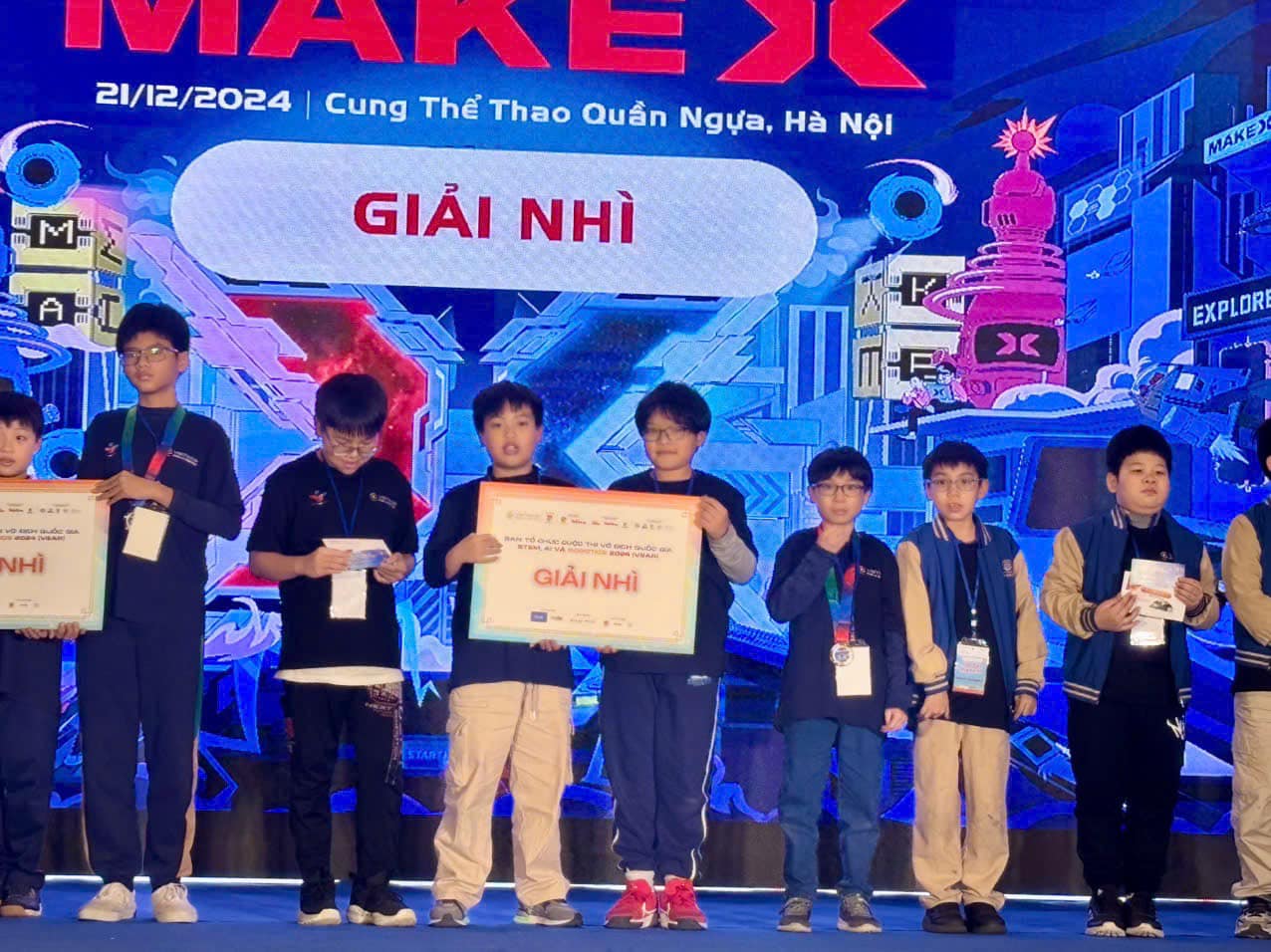 HOÀNG NAM KHÁNH VÀ NGUYỄN ĐỨC LÂM, LỚP 5A5 XUẤT SẮC GIÀNH GIẢI NHÌ TẠI VÒNG CHUNG KẾT CUỘC THI VÔ ĐỊCH QUỐC GIA STEM, AI VÀ ROBOTICS 2024
