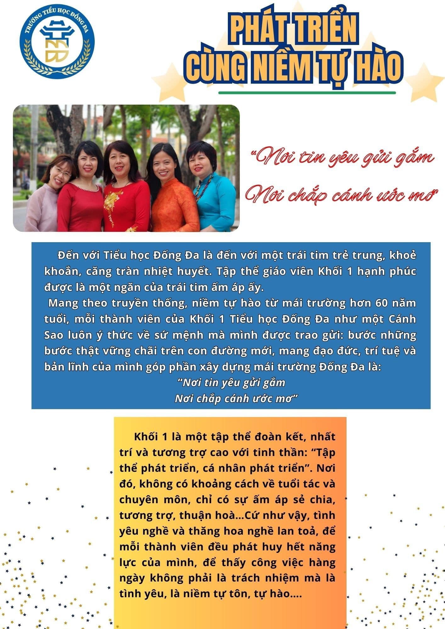 Trong ngôi trường Tiểu học Đống Đa, mỗi Cô giáo của Khối 1 là CÁNH SAO lấp lánh, hài hoà bên nhau cùng phát triển. Bởi trong trái tim của mỗi Cô đều chan chứa một niềm tự hào, một tình yêu với học trò, với mái trường và nghề [...]